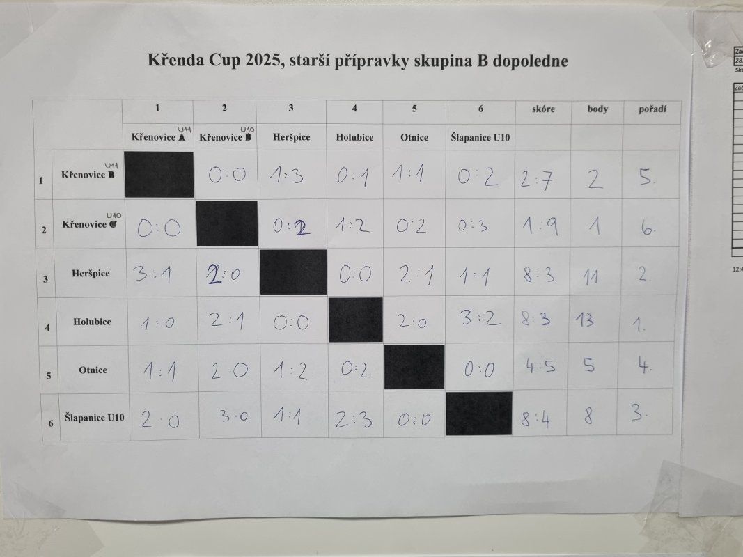 Křenda cup - skupina B - 1.místo pro starší přípravku TJ Holubice